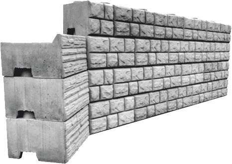 Prefabrykaty betonowe do budowy (wznoszenia) ozdobnych murów oporowych, oraz samonośnych ścian oporowych w wysokościach od 0,5 m do 4,5 m wysokości ( co 0,5 m ) z możliwością układania zarówno w linii prostej jak również na łukach i zakrętach Występują w 3 wzorach: cegła, piaskowiec oraz gładki. Dostępne są bloki podstawowe, górne, połówki oraz opcjonalnie podstawowe puste w środku (celem zaoszczędzenia wagi danego elementu).