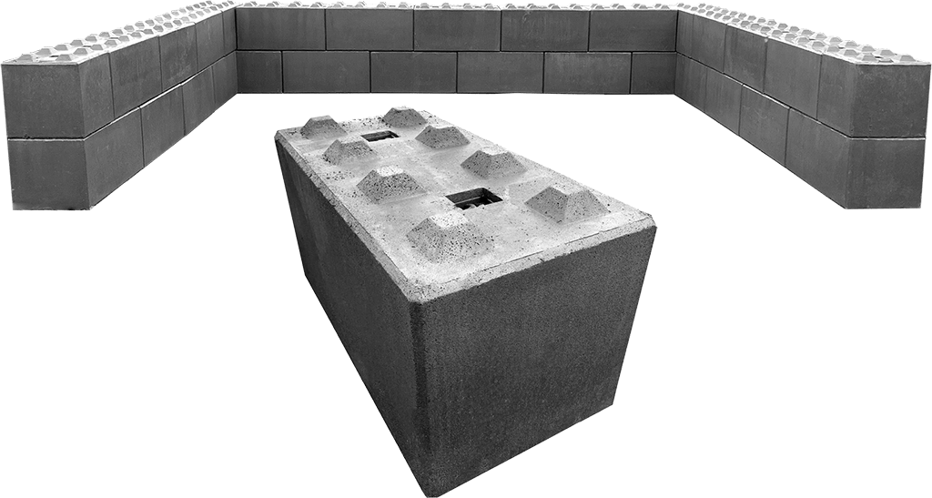 Mury oporowe typu Bloki Betonowe to łatwy i szybki sposób na budowę ścian oporowych, powierzchni magazynowych, wiat, boksów i zasiek oraz wiele innych zastosowań. Ściany i mury oporowe wykonane z naszych prefabrykatów są szerokości 60 cm. Nasze klocki betonowe zapewniają szybki i bezproblemowy montaż prefabrykatów, ułatwiają wznoszenie ścian murów oporowych.Dzięki równie szybkiemu i prostemu demontażowi, można stosować te bloki betonowe w konstrukcjach tymczasowych. Nośność ścian zapewniona jest dzięki wadze pojedynczego prefabrykatu (1 tona), jak również siłach i oporach tarcia.Mury występują w wymiarach 120x60x60 cm oraz połówki 60x60x60 cm.