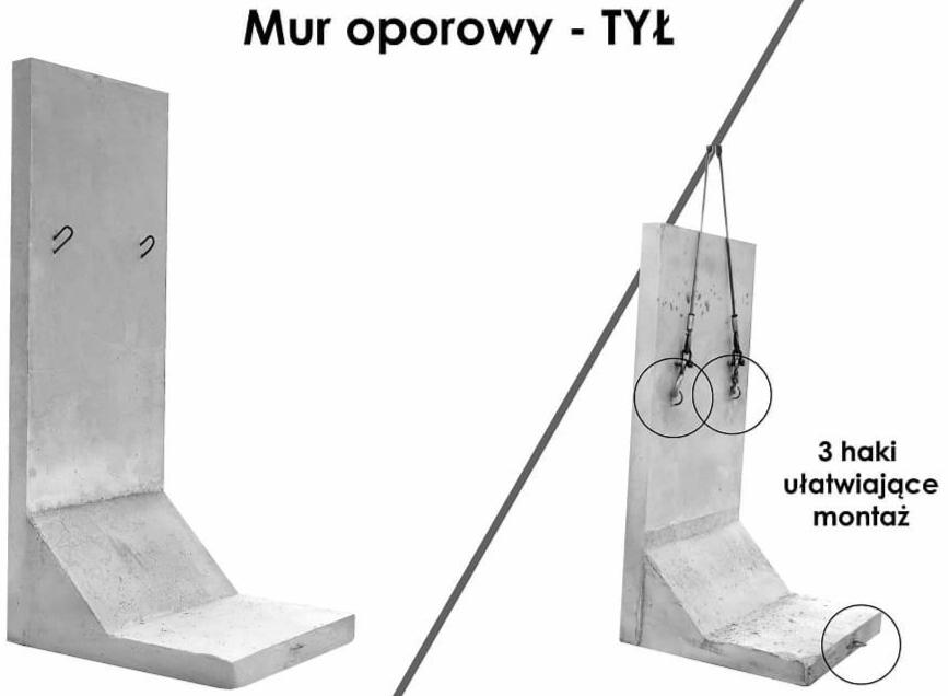 Zastosowane przez nas zbrojenie w murach oporowych typu L, pozwala na uzyskanie wytrzymałości nacisku od 5kN/m2 aż do 25 kN/m2, czyli od 500 kg do nawet 2500 kg na metr kwadratowy.W elkach betonowych zastosowano haki montażowe w 3 różnych miejscach, tak aby magazynowanie ich oraz montaż był jak najszybszy. Dzięki zastosowaniu naszych murów oporowych skrócisz czas budowy i obniżysz całkowity koszt inwestycji. W efekcie otrzymasz betonowe ściany o bardzo gładkiej powierzchni, której nie ma konieczności już dodatkowo wykańczać.